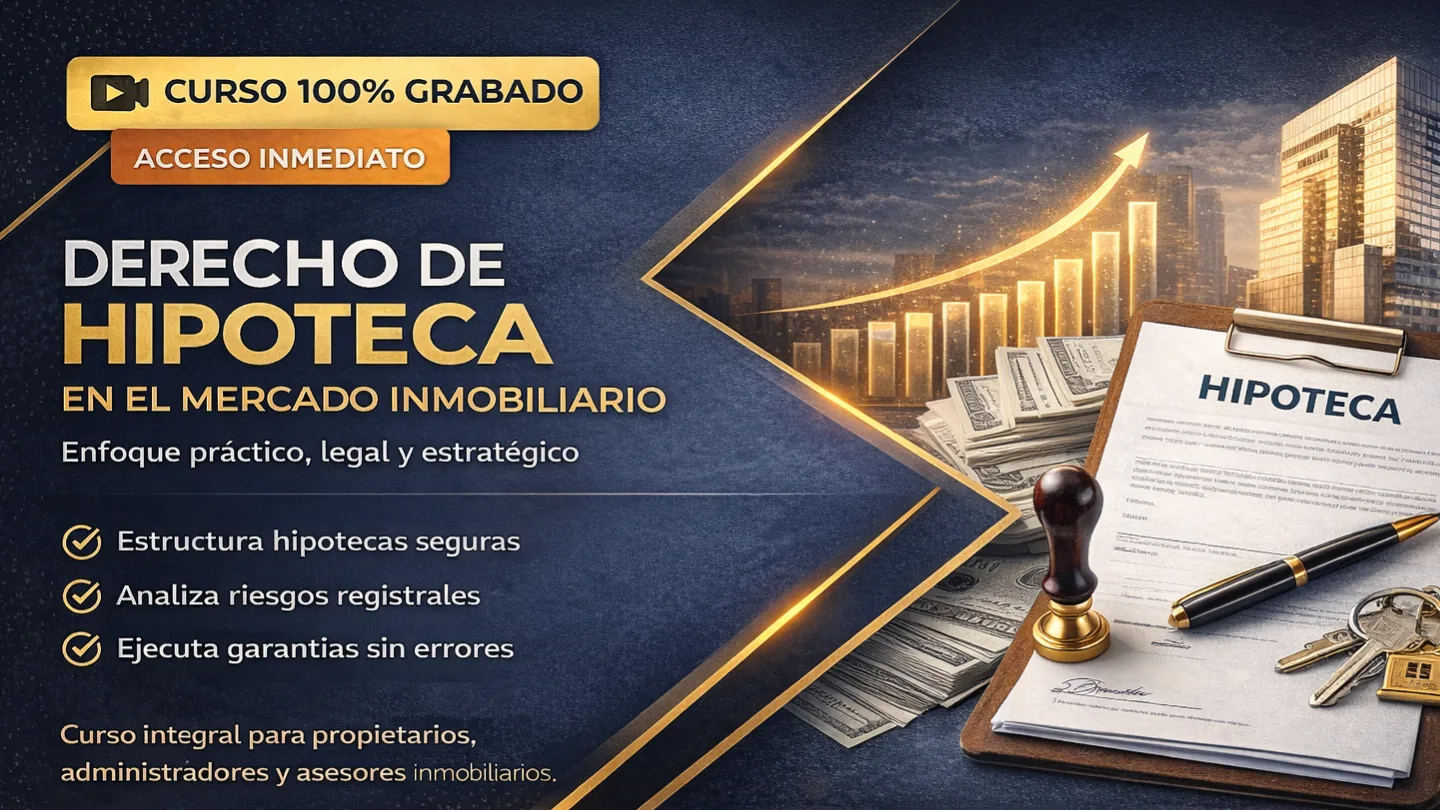 Derecho de Hipoteca en el Mercado Inmobiliario – Enfoque Práctico, Legal y Estratégico es un curso diseñado para brindar un dominio técnico y aplicado del derecho hipotecario, permitiendo al participante estructurar, analizar, negociar y ejecutar garantías hipotecarias en operaciones inmobiliarias reales.